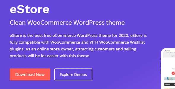 eStore is the best free eCommerce WordPress theme for 2020. eStore is fully compatible with WooCommerce and YITH WooCommerce Wishlist plugins. As an online store owner, attracting customers and selling products will be a lot easier with this theme